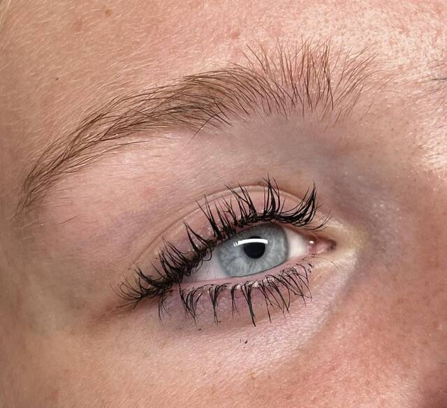 Hierboven zie je Lash lifting, waarbij de wimpers ook zijn geverfd voor wat meer effect te geven aan de wimpers.